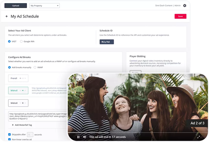 - 針對廣告進行最佳化: 一流的廣告整合、廣泛的標準支援以及 SSAI 和 CSAI 的創新產品可帶來更多的廣告收入和更高的每千次曝光費用